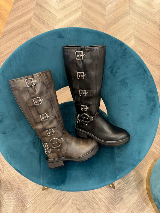 STIVALI BIKER nero e marrone