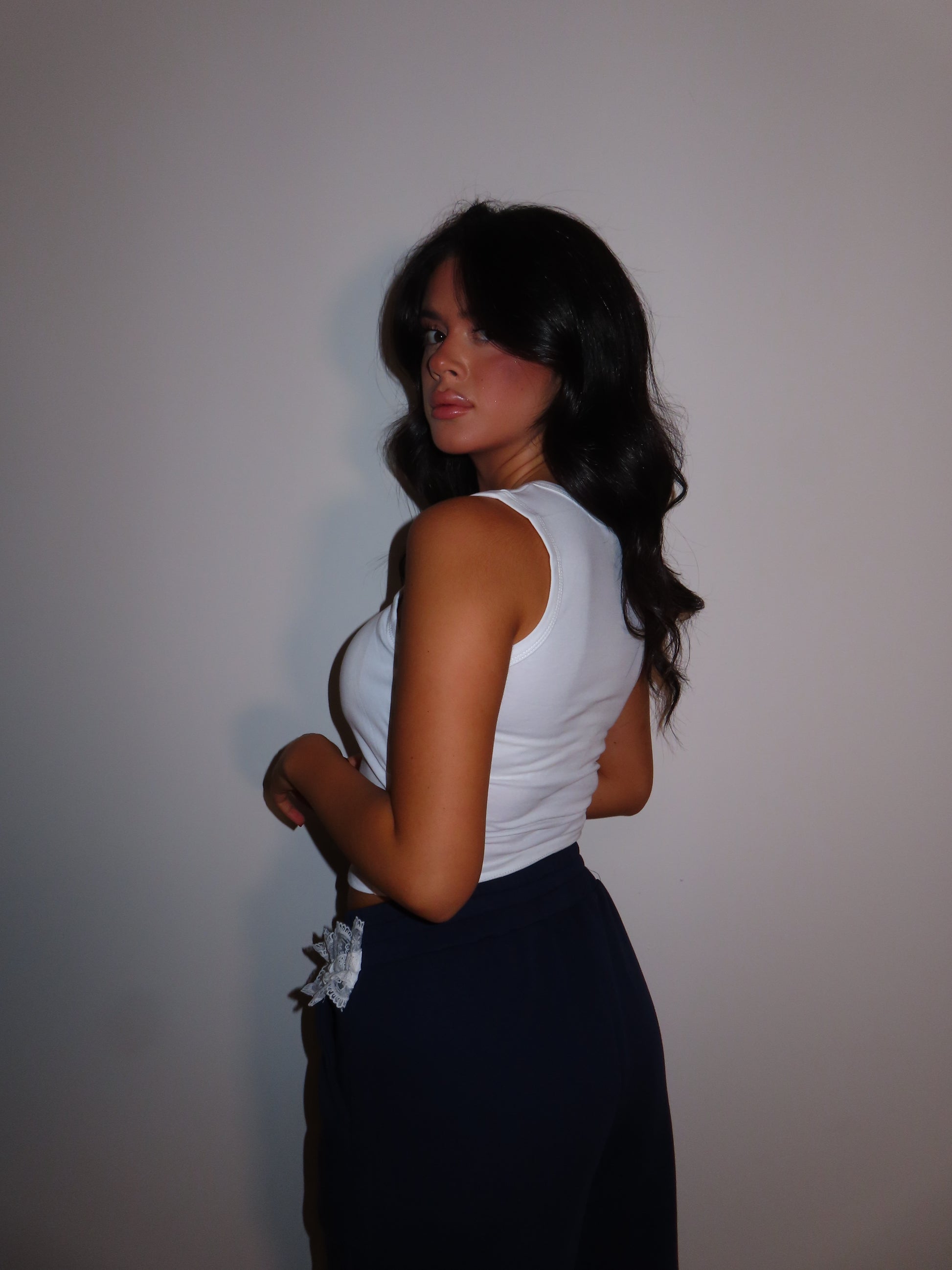 Canotta liscia cotone (non a costine), con coppe interne che sostengono e valorizzano.