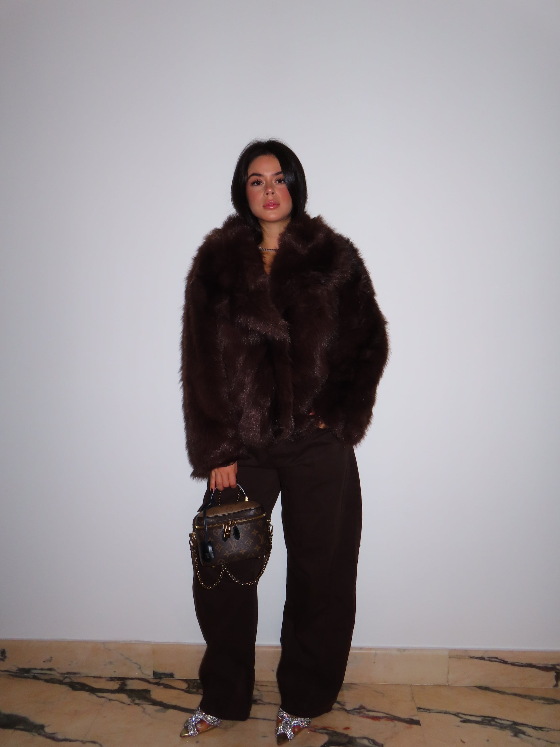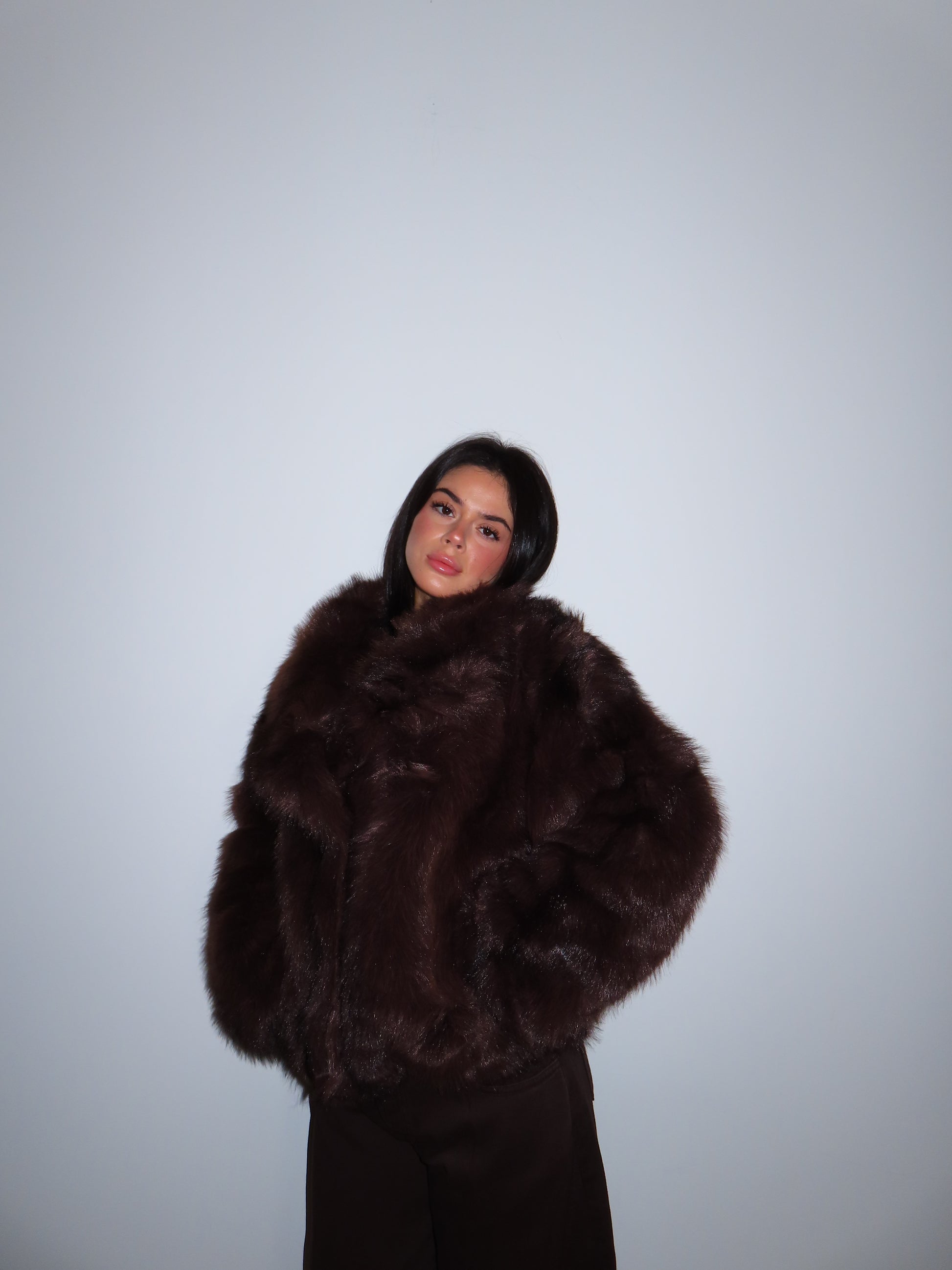 Pelliccia morbida con tasche, bavero e bottoni.