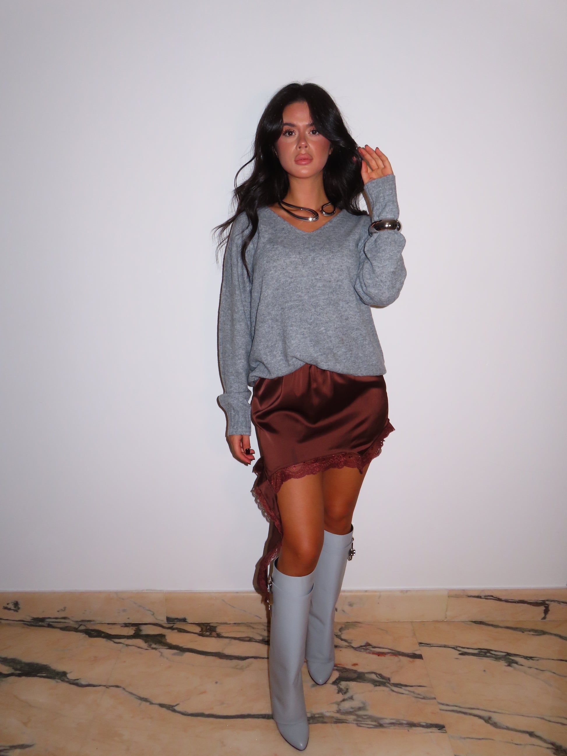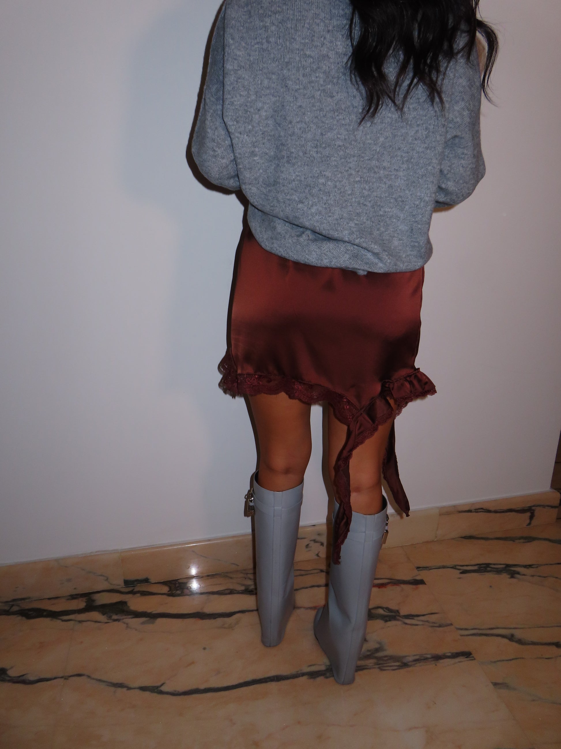 Gonna elegante e fluida in raso, morbida e luminosa.